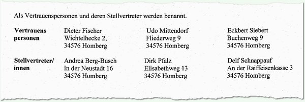 Die Zuordnung von Stellvertretern und Vertrauensleuten sei nicht eindeutig erkennbar