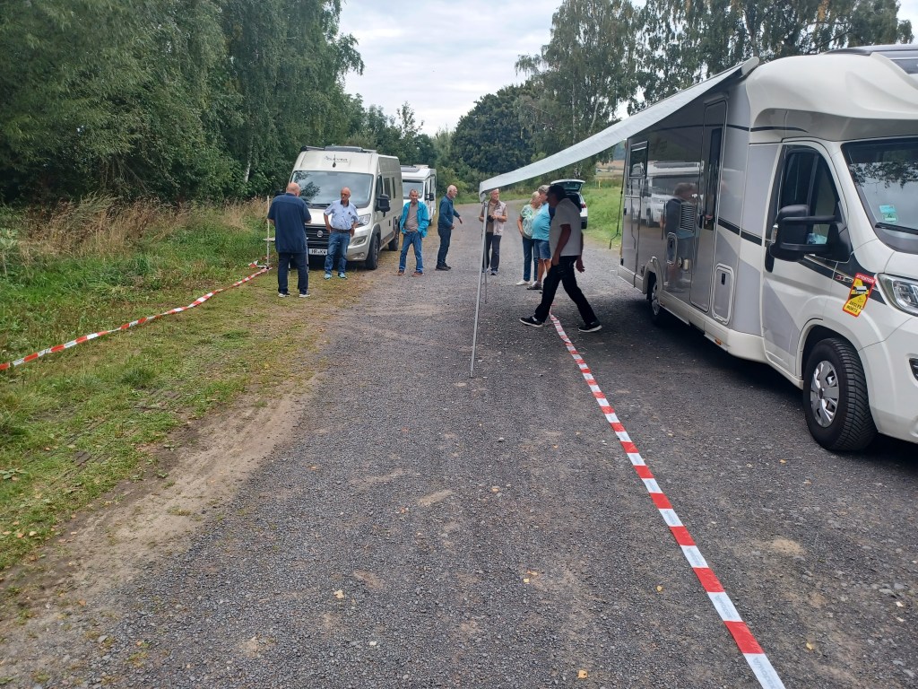 Kurzfristig hatte die FWG daher zur Stellplatzprobe geladen. Einige Wohnmobilisten sind der Einladung gefolgt, so dass verschiedene Anordnungen der Abstellflächen geprüft und visualisiert werden konnten.