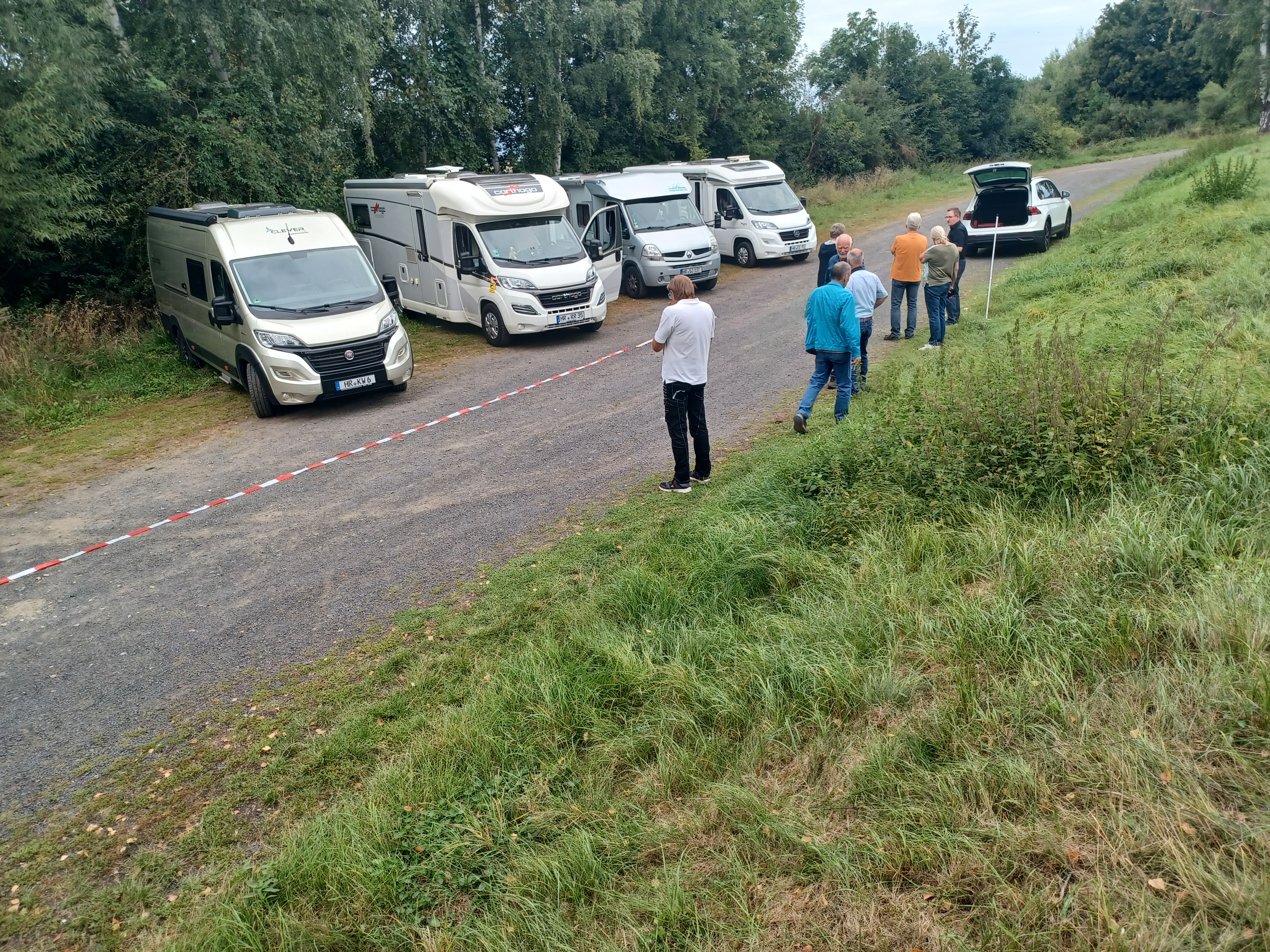 Kurzfristig hatte die FWG daher zur Stellplatzprobe geladen. Einige Wohnmobilisten sind der Einladung gefolgt, so dass verschiedene Anordnungen der Abstellflächen geprüft und visualisiert werden konnten.